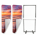 Gráfica impresa en textil ignífugo con cordón rectangular cosido al perímetro de la tela de silicona. Cambio de imagen en segundos